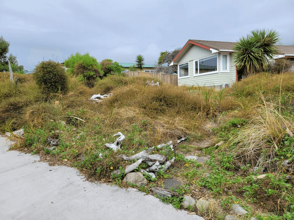 Amelia Geary, who lives in Paekākāriki on a quarter-acre block, was inspired to revamp her backyard after hearing lizards rustling in a flax bush, and mowing her lawn for the first time. “It took me three hours and I was like, no. This has to end,” she says. In the areas closest to the beach, Geary chose to replace grass with hardy plants that could survive in sandy soil and the harsh coastal environment – species like spinifex, pīngao, and dune coprosmas. Shrubs and more woody vegetation dominate the opposite end of the garden. She was careful to plant both male and female coprosmas, so they’d fruit, providing kai for the lizards and birds. She even established native mistletoe – a group of plants which have declined considerably since the early 1900s.