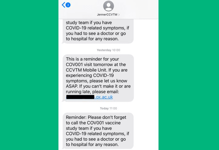 I was given a sticker with the number 5 on it and taken to see a socially distanced video of Adrian Hill, the director of Oxford’s Jenner Institute, explaining what was happening. There were then legal documents to be signed disclaiming any liability on the part of the University of Oxford for eternity, and a form for bank details. So we did get paid.