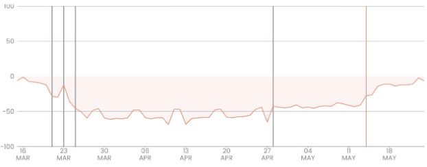 The team from DataVentures also observed that those in rural areas were likely to need to travel “to denser populated areas where points of interest such as supermarkets reside, hence the smaller decrease in mobility”, and, to a lesser extent, “the fact devices in rural areas are harder to pick up so the change in counts for an area may experience less change as a result”.