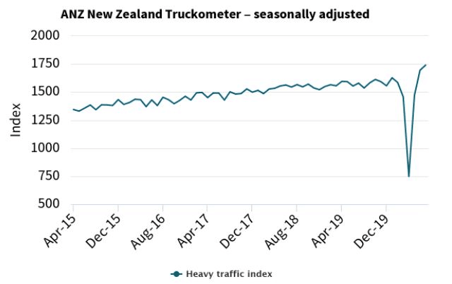 Another series that shows the effects of the lockdown is New Zealand’s best named statistic, the ANZ Truckometer. For both heavy and light trucks, the April reading shows a huge plunge. It is worth noting how quick the Truckometer bounced back, with new highs in both June and July. These drops not only shows that we were largely staying put, but the reduction in fuel supply means a reduction in fuel usage, which leads to changes in air pollution and carbon emissions that we’ll discuss in subsequent pieces in this series.