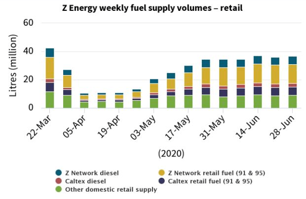 The mobility data also showed a big drop in transit activity. This was supported with a huge drop in the amount of fuel being used in the country, as measured by the Z Energy fuel supply index. Prior to lockdown, Z was supplying around 40 million litres of fuel a week; by April 5, the supply was about a quarter of that.