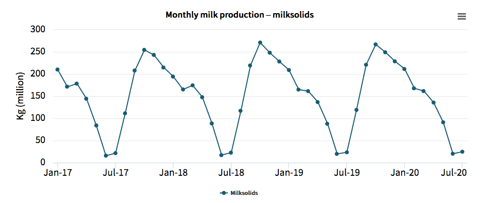 During our level four, farming was designated an essential service, meaning that there wasn’t any restriction on levels of activity. This is supported by StatsNZ’s data on milk production, with no significant difference between the milk production amounts in March or April 2020 when compared to the same period the year before.