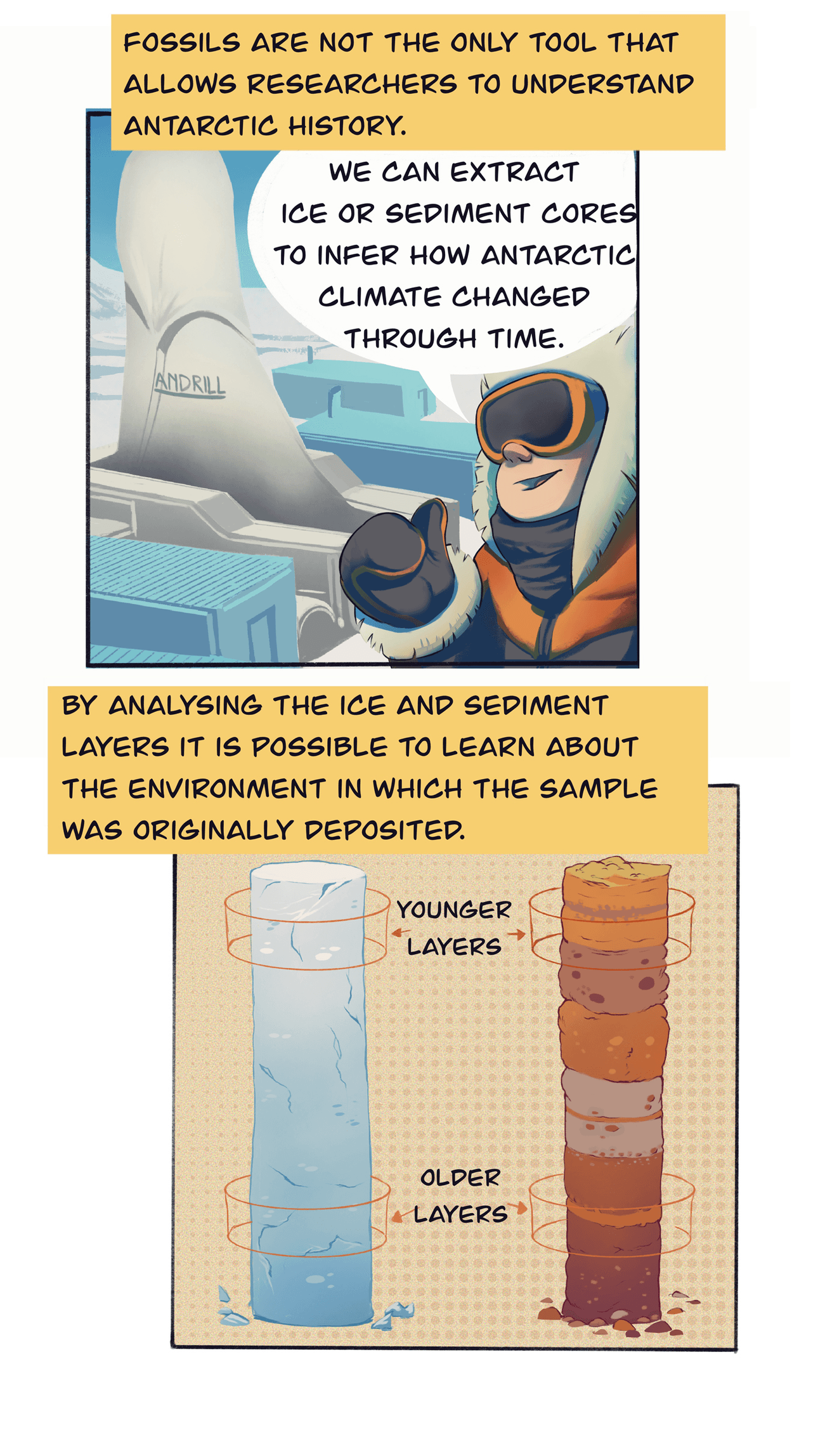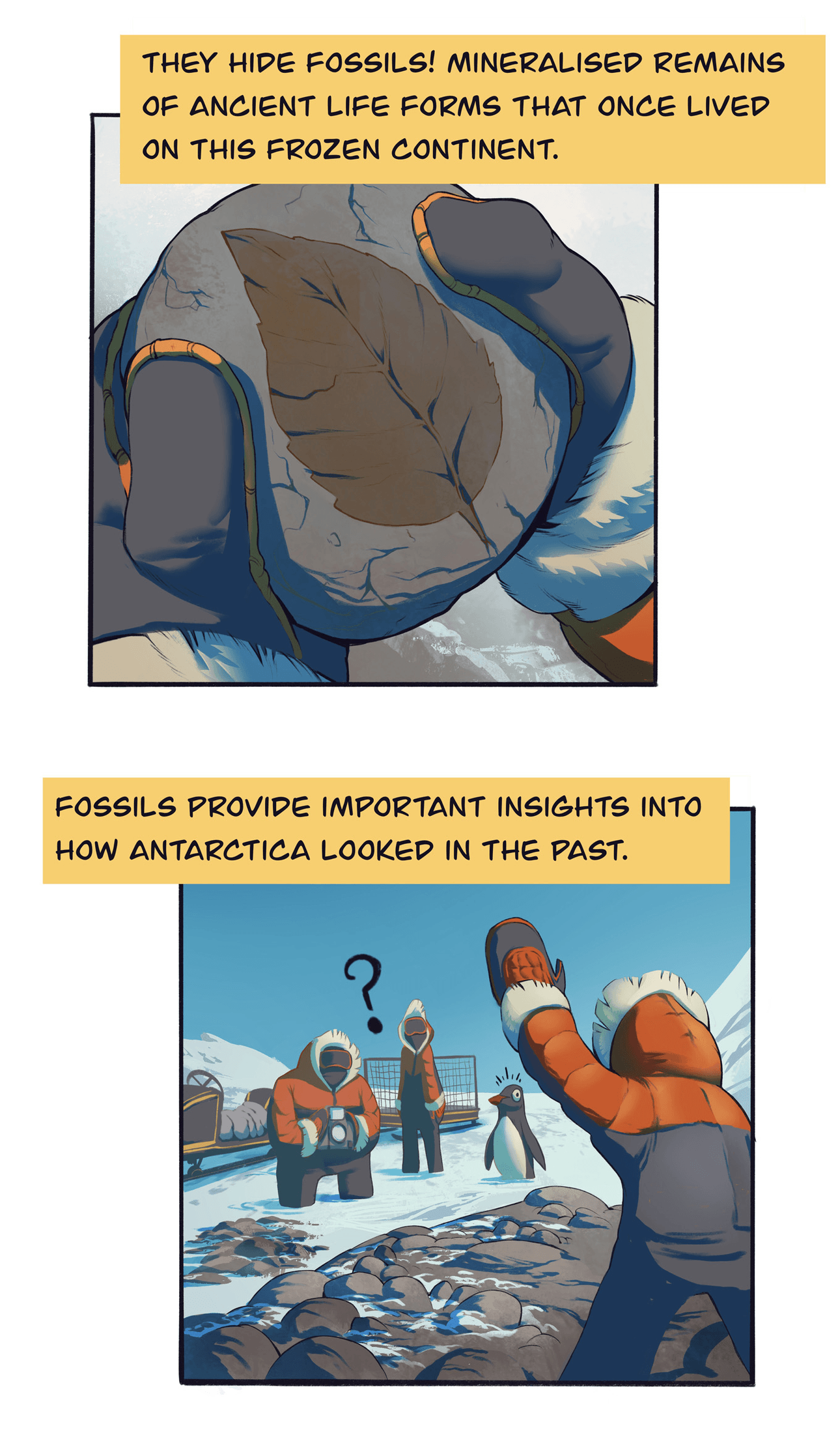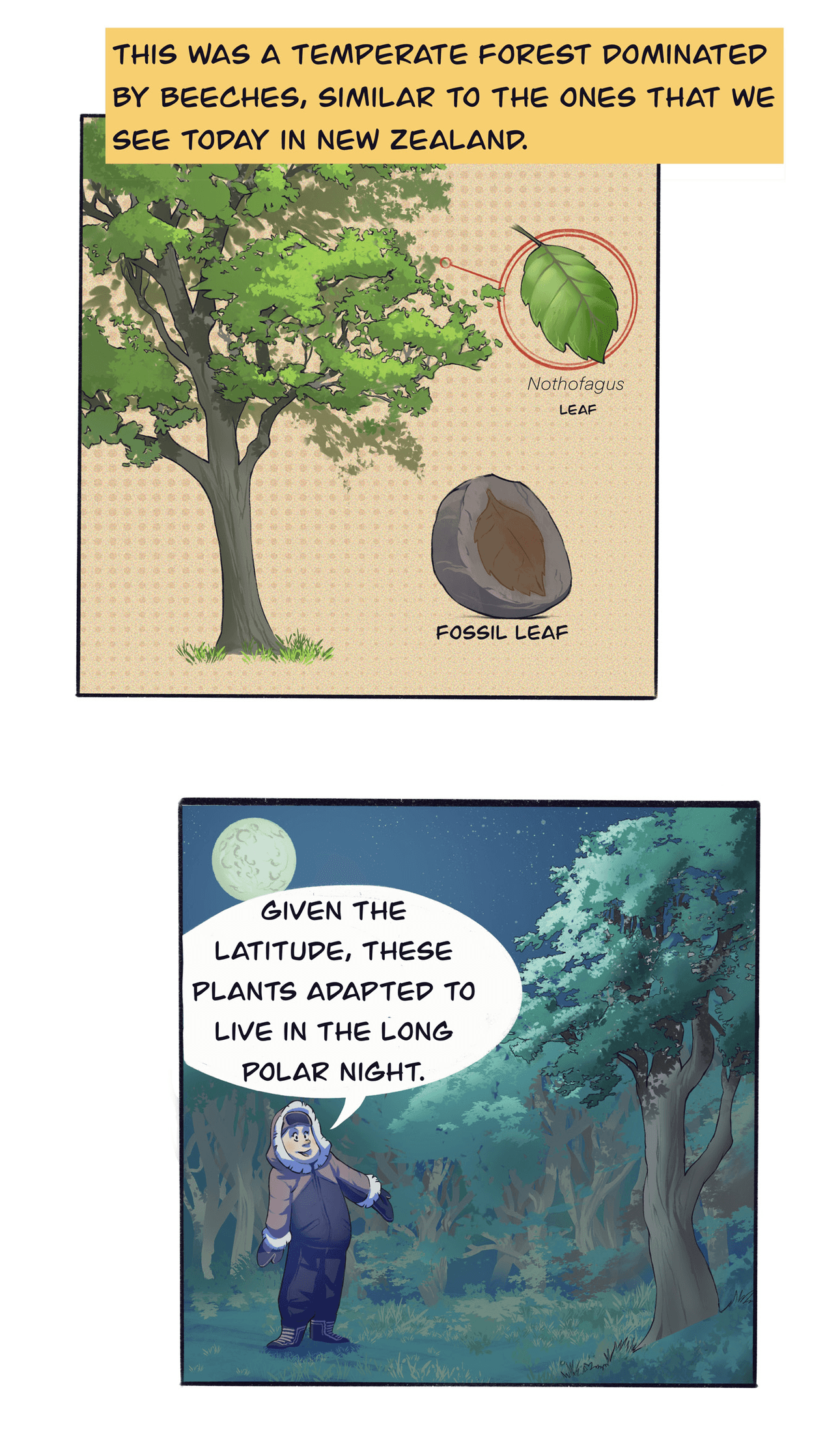 My Antarctic journey began on an expedition searching for younger plant fossils, preserved in rocks dragged up by the ice and deposited in huge stone fields. Stumbling through this rubble I broke open a brown, muddy rock and found a fossil of a Nothofagus leaf, a 40-million-year-old ancestor of our southern beech trees, currently widespread across Aotearoa New Zealand, Tasmania and Patagonia. It’s hard to put into words the feeling of standing on the frozen ground, looking at this leaf fossil, and imagining the forest that once covered Antarctica emerging from the ice around me, like lifting the veil to a long-forgotten world. What happened that turned this lush Aotearoa-like forest into the barren polar desert it is today?