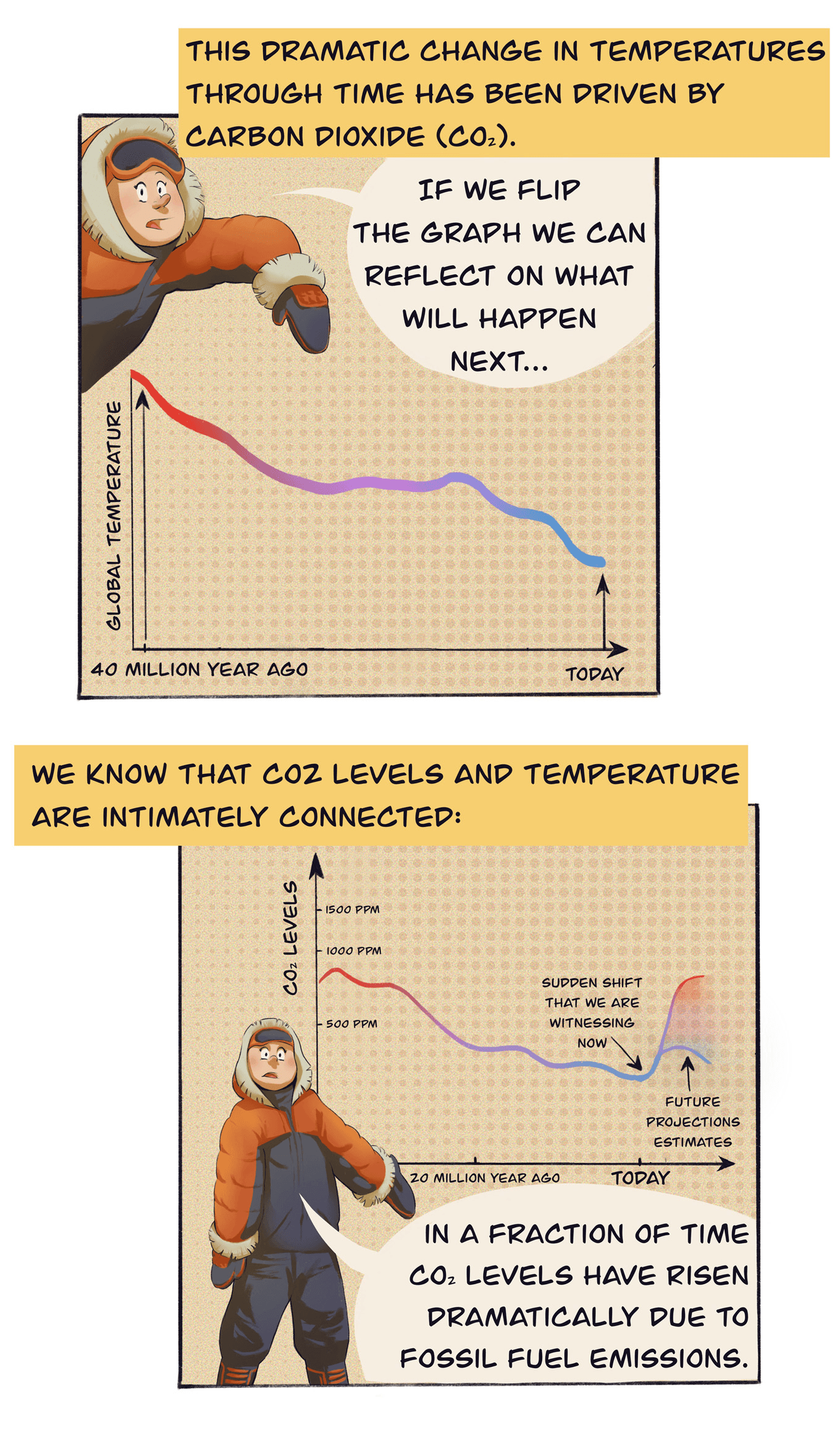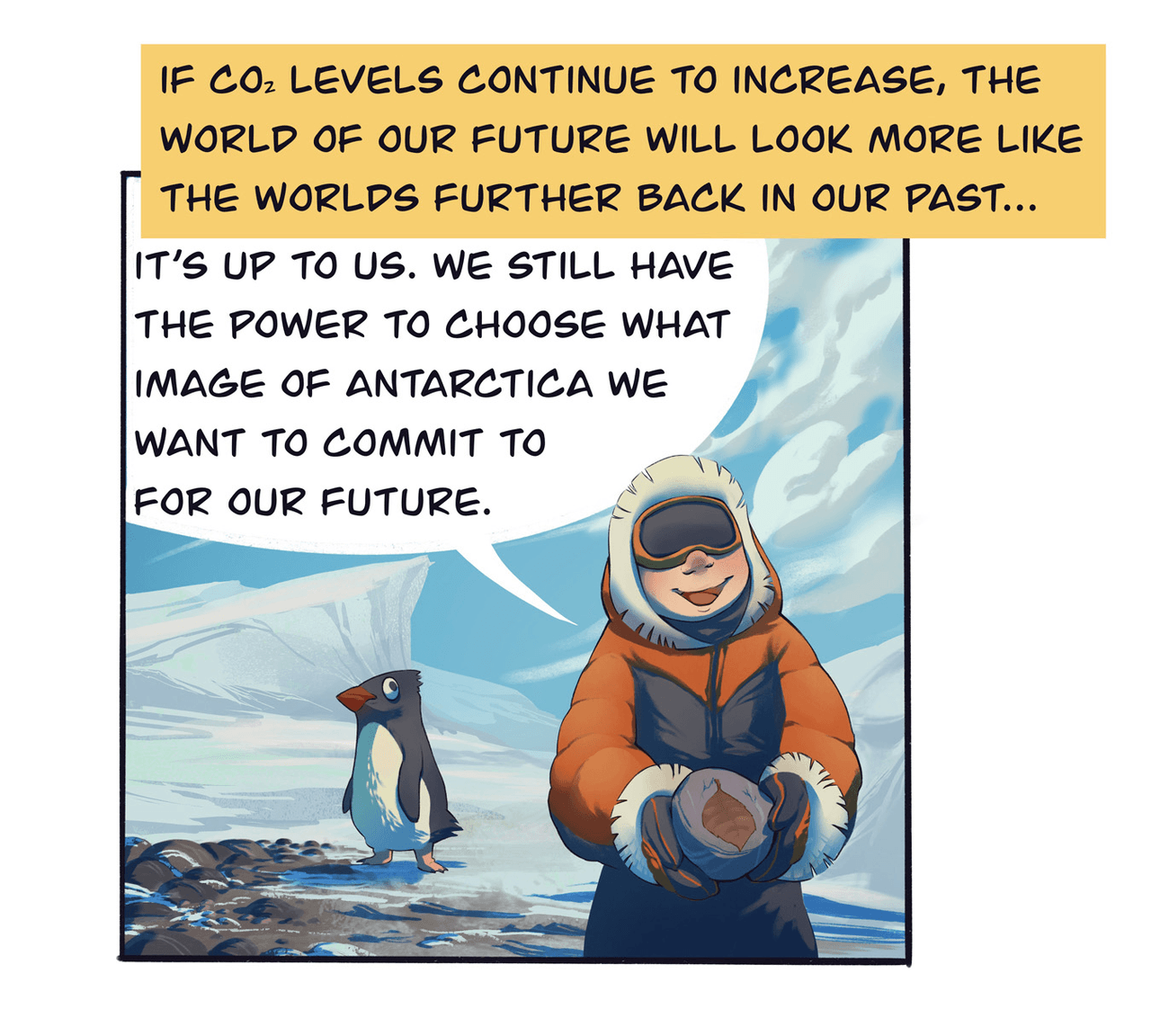 A forested Antarctica might sound like a pretty fascinating concept, but the consequences would be severe. Along with sea level rise, it would come with the disappearance of unique polar and subpolar ecosystems, as well as startling changes to global temperature, agriculture and the habitability of large, currently very populated, areas of the globe. As atmospheric CO2 levels continue to relentlessly creep up, the world of our future becomes more and more like worlds further back in our past. So what image of Antarctica will we commit to? A lower CO2 version where impacts of temperature and sea level rise are reduced? Or the version that will play out if we don’t act fast enough, the “greenhouse” world of vast ice loss, grave environmental change, and eventually, a return to a green Antarctica.