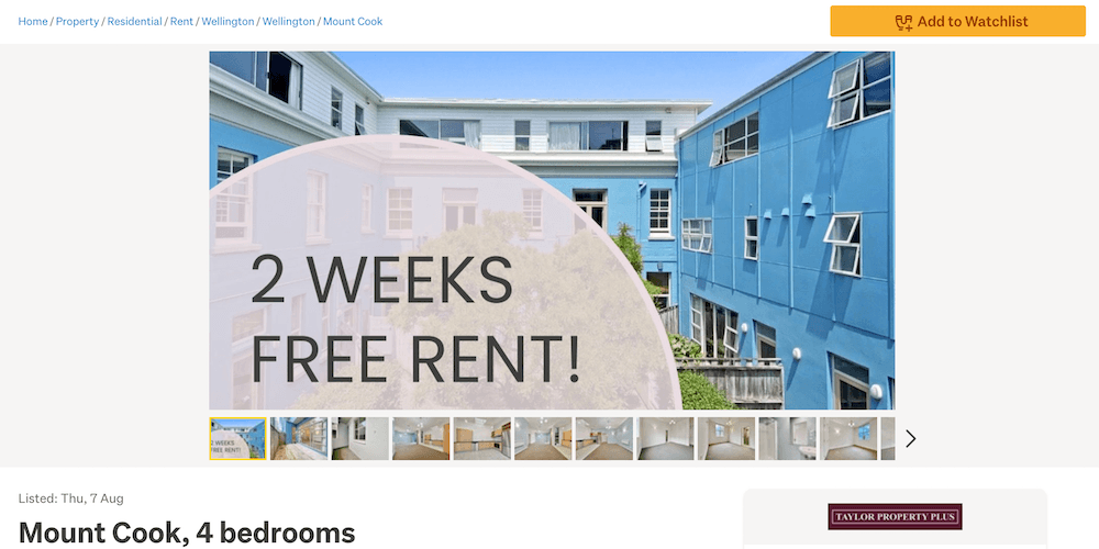 Taylor Property Plus throws the term “free rent” around so much in their listings, I wonder if their tenants ever pay at all. This four-bedroom Mount Cook apartment is $845 per week, which you could get free for two weeks.