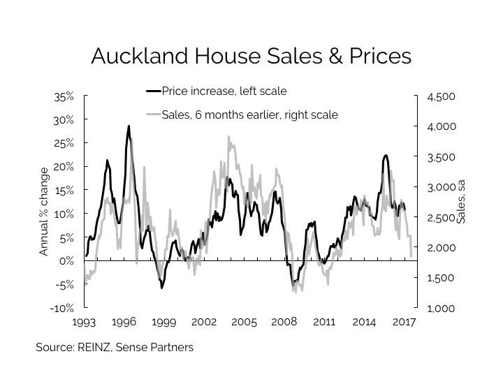 More timely data from REINZ, which collects data at the point of transactions going unconditional, shows similar patterns. For example, house prices in Auckland fell sharply in November and a little in December… but they rose in January.