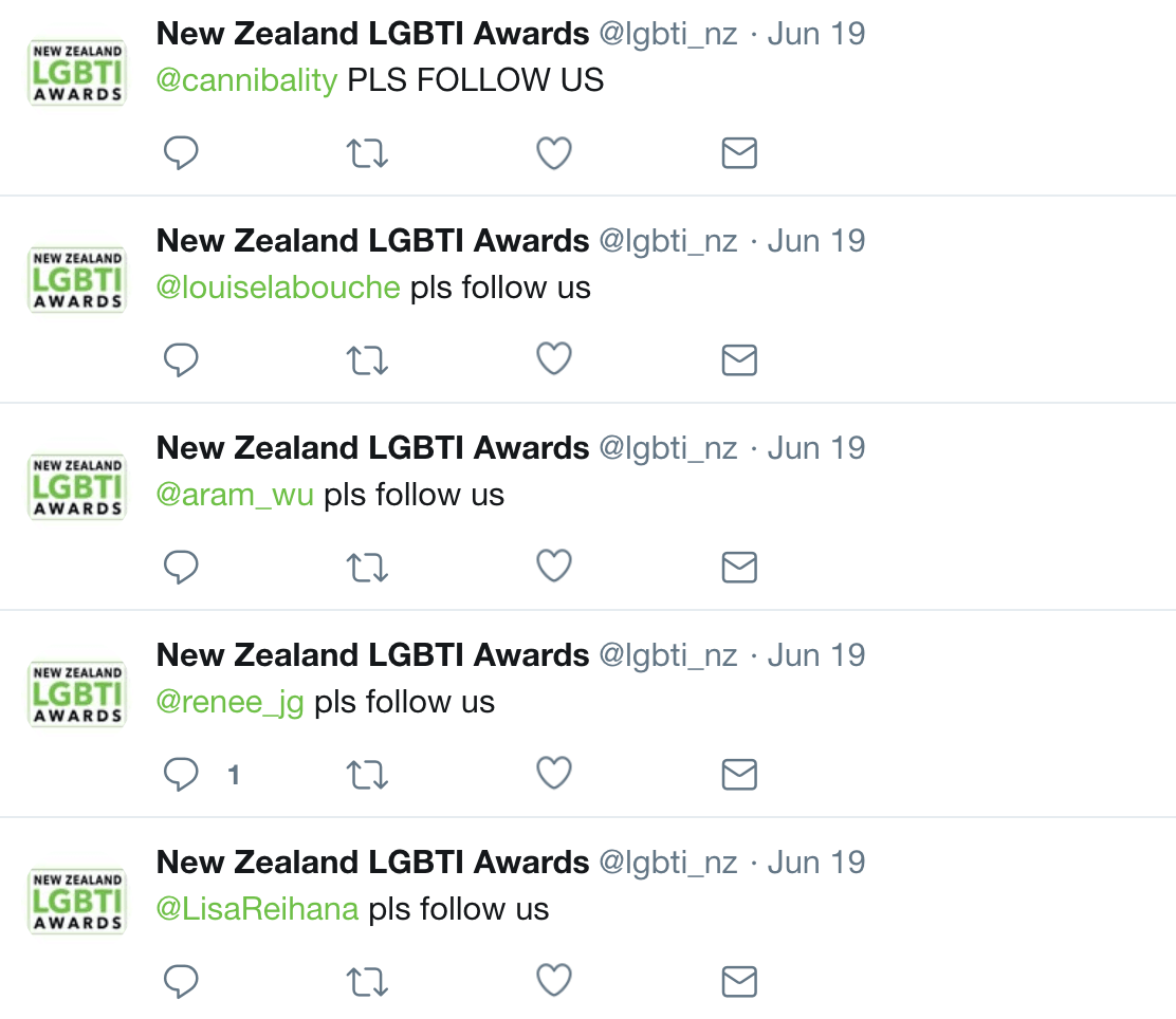 They also deleted their numerous “Congratulations! You’ve been nominated!” images they’d tweeted out – including nominees like Facebook, the NZ Police and Verizon – a company which as far as I can tell has absolutely no presence in New Zealand at all.