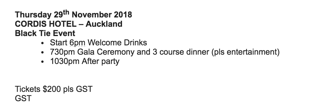 “Hi David, if you like we can explain the process. The Awards are part of an international program – we are launching in New Zealand. Its based on public nominations. we received over 1200 nominations New Zealand wide and the shortlist will be announced on 1st July . The Gala dinner is in Auckland on 29th Nov where the winners will be announced. However today is our last possible deadline to sent in your submission if you accept the nomination.”