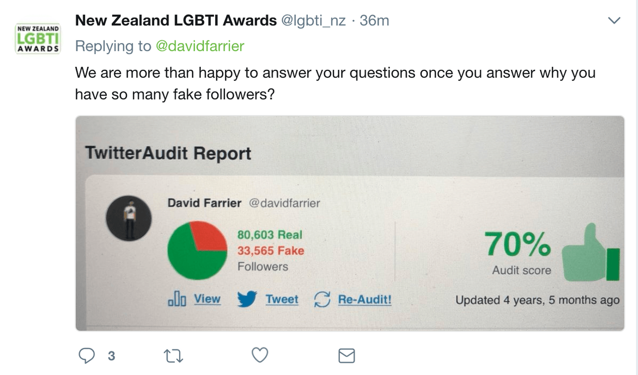 So I did what I tend to do when I hit a wall, and I tweeted about what I’d found so far. The 12,000 nominations (including the NZ Police, Corrections and Facebook), the $200 cover charge, their manic-tweeting, and their lack of a response to my queries.