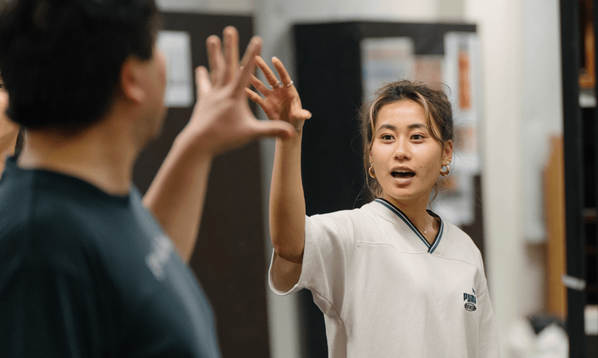 “It was really important that the whole cast be Chinese because the story is told from the Chinese perspective … They’re retelling the story to us so of course they would act out all the characters and all the people they encountered, which includes Pākehā people,” she says. “So because there are three or four Pākehā characters, the challenge has been ‘how do we portray Pākehā characters without being offensive?’”