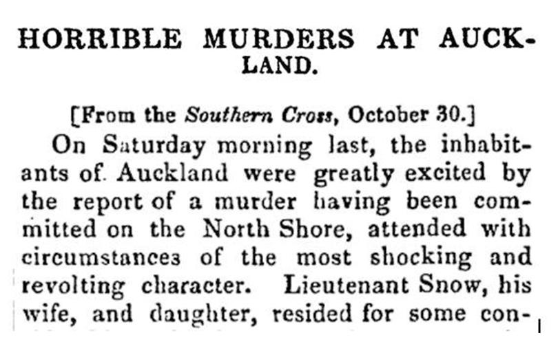The New Zealander (one of Aotearoa’s very first newspapers) is quick to lay blame for the murder of the Snow family:
