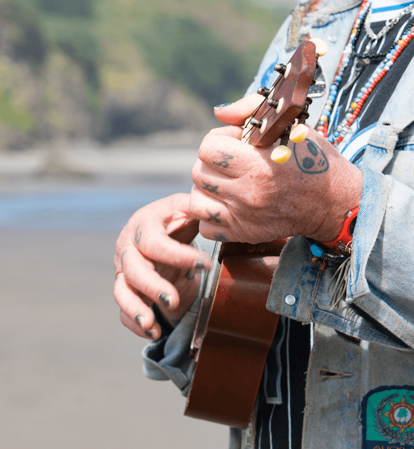 Then, from somewhere in the distance, the sound of a ukulele reached my ears. Looking up, I was presented with a man further up the beach, enthusiastically stomping his heavily booted foot while he played the ukulele. A few metres away, I noticed movement.
