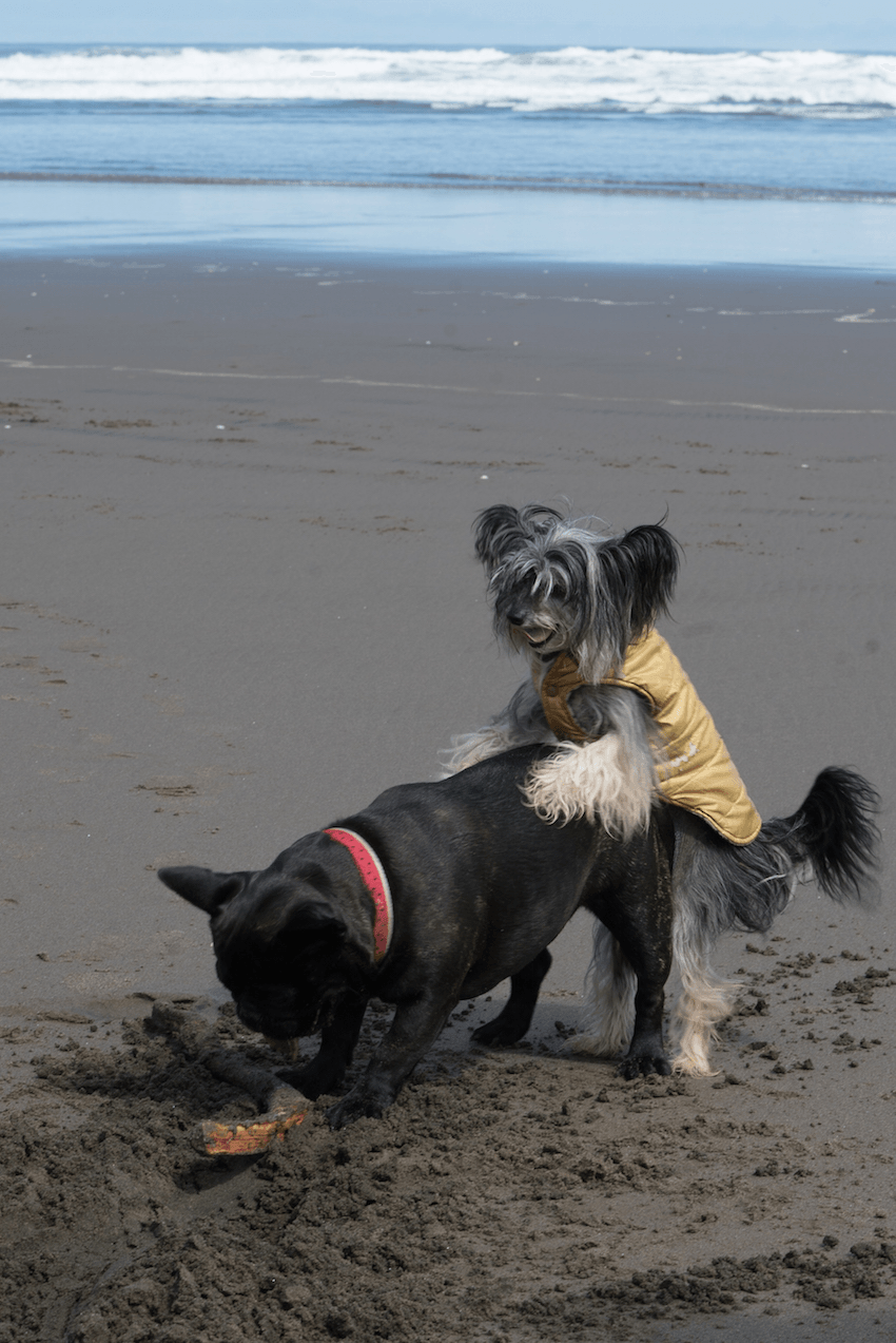 Strolling into the backyard, he introduced me to Rua and Minerva, who appeared to be very much in love, or at the very least in a mutual state of adoration. Where one dog went, the other followed.