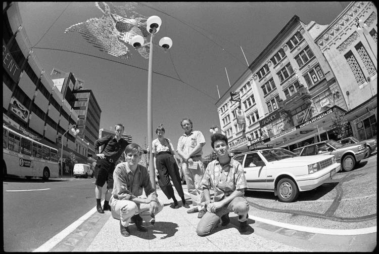 But the work Page is best known for is probably his music videos. It all started in 1985, when Flying Nun agreed to release The Axemen’s debut LP with a colour-printed gatefold cover. The production costs of such a release were huge; Page remembers a staffer at Flying Nun telling him, “You’re gonna fuckin’ bankrupt me.” Not wanting to be held responsible for the label’s financial collapse, The Axemen decided to promote the album themselves. The best way for a local band to be noticed was to get a music video on Radio with Pictures, which aired on Sunday evenings before the weekly horror film on TV2. And so Page learned how to shoot moving pictures. The result was “outrageous” and “pretty rough, there’s lots of mistakes”, he says. “I think they played it once – all that work and they played it once. But it was a momentous occasion to see it on TV. All these people came around, and we went ‘holy crap, that’s us’.”