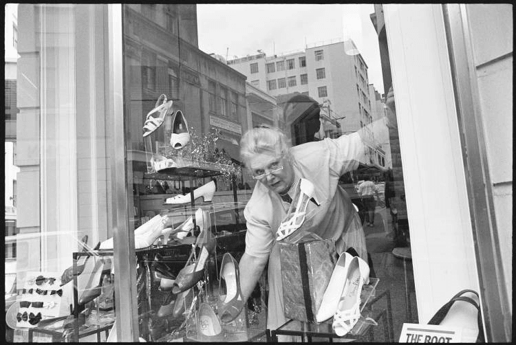 It is a strange feeling to be that future audience. An Aucklander born just after they were taken, I recognise the place names and still see traces of that 1989 Auckland. Campbell Shoes is no longer on the corner of Vulcan Lane and High Street, but the shop window is familiar; apart from the new Gorman signage and clothes, the facade looks the same. The Onehunga Wharf was purchased from Ports of Auckland by the Auckland Council in 2018 and is being developed into a “destination”. Fish are packed elsewhere.