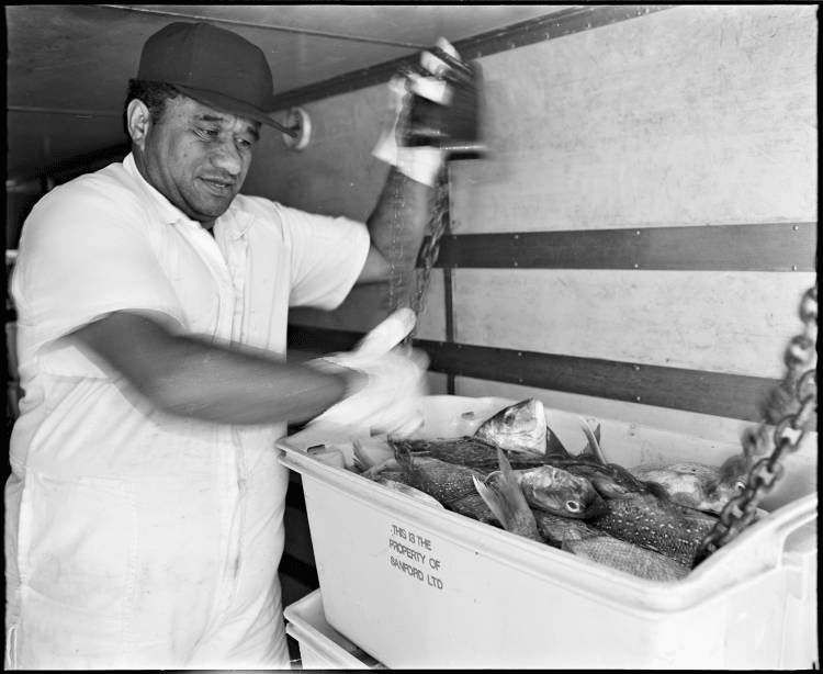 He’d moved to Auckland from Christchurch just two years before. In Tāmaki, Mt Wellington, Panmure, Onehunga, Sandringham and the CBD, he walked the streets capturing spontaneous moments and transient places. In the industrial suburbs, he found his way inside factories and took photos of the people working there too.