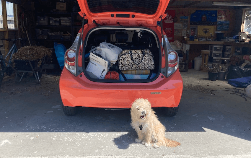 We had one more walk down the beach before preparing to head back south. Like a fed-up kid, Maggie huffed into the back seat of the car while we packed down the tent and did one last poo patrol around the perimeter. Leonard and his dad had already headed home in their caravan, as had Ruby and her mum. We stopped at a dog-friendly cafe in Amberley for breakfast, followed by a quick visit to the dog-friendly SPCA opshop (open on Sundays!).