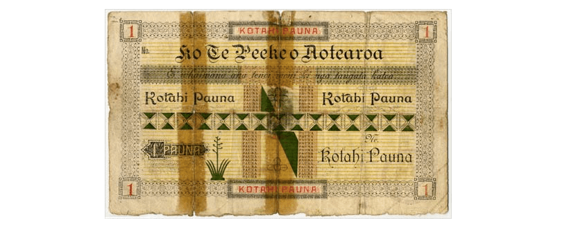 But the use of Aotearoa is much older than Bassett suggests. The name appears in a song that George Grey collected, where it refers to the land discovered by the legendary navigator Kupe. The song was already old when Grey heard it in 1845. Auckland’s War Memorial Museum displays an exquisite flag that was captured by colonial troops from King Taawhiao’s men in the Hunua Ranges in 1863, during the early phase of the Waikato War. The flag is emblazoned with the name Aotearoa. When Taawhiao founded his own bank he called it Te Peeke o Aotearoa. The banknotes he issued carried the name. A search of 19th century newspapers at the Papers Past online archive turns up 1,379 references to Aotearoa, the vast majority of them in Māori-language media.