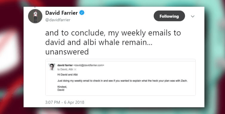 When contacted for comment by the Spinoff editor, the Spinoff editor said that impugning the honesty of David Farrier and the Spinoff is “wrong” and “stupid”.