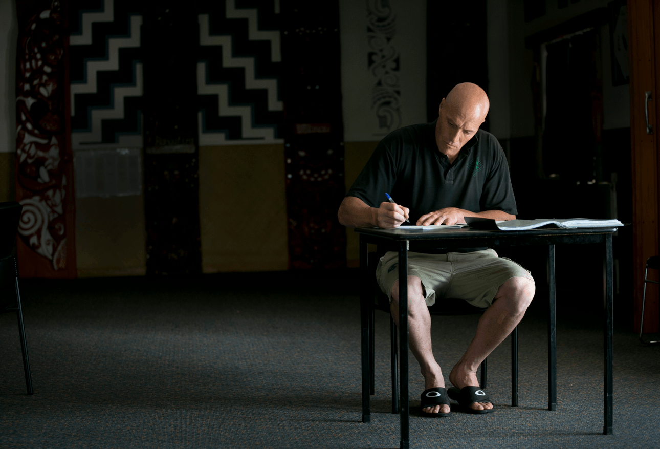 So he was in the Te Ao Marama unit in Waikeria Prison, and we were just blown away by this powhiri. We were welcomed on by about 40 or 50 inmates, and it’s part of the tradition when you get welcomed on. It was really powerful. We could see Karl, he’s a huge guy, and he was welcoming us on. And at that point we knew it was really going to happen. He’s quite a compelling character, very frank about his involvement in the meth scene, graduating from a user to a dealer then a supplier, and then a very dramatic arrest and fall from grace. And his mum was very frank and honest as well.