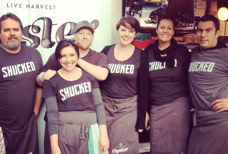 A line of people queue patiently in a carpark off Cuba Street. While they wait, sometimes in sideways rain, some make friends in the line, while others order drinks off the man wandering the queue with an eftpos machine. They’re waiting for oysters: five types of them, natural or beer battered, and shucked to order, served out of a silver caravan.