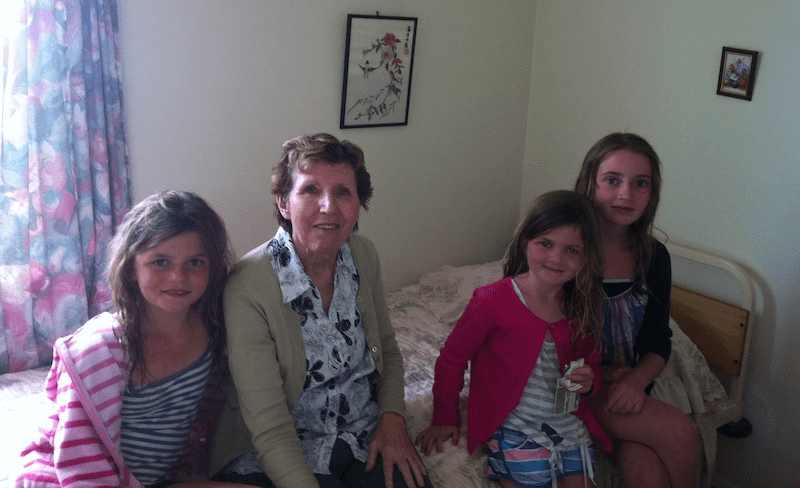 Mum’s bed is surrounded by framed memories of her life. There’s a photograph of me with my daughter, Bianca, taken 14 years ago, when Mum was still Mum. A picture of Mum’s own mother, smiling, sits near a vase of pale pink silk roses. A wooden crucifix hangs above a hospital trolley, near the nurse’s call button Mum doesn’t know how to operate. Visitors scribble their messages in a floral visitor book with a faded front cover.