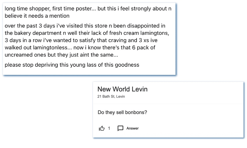 Facebook reviewers are onboard, too, with many happy customers taking the time to shout out the New World for its excellence. Except for one person deeply concerned about an ongoing lack of lamingtons in the bakery. “Please stop depriving this young lass of this goodness,” they wrote.