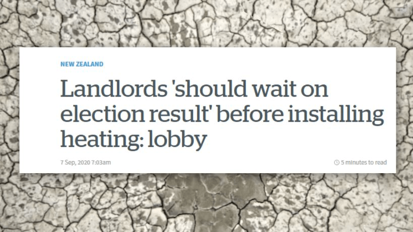 Andrew King, of the Property Investors Federation, yesterday welcomed Collins’ equivocation on the question of survivable living environments. In an interview with the Herald, he urged landlords to delay installing a heat pump until after the election, presumably on the off-chance they might make tenants healthier through the winter without being legally obliged to.