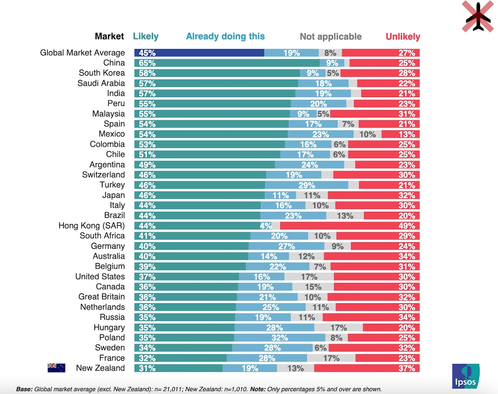 When asked about the likelihood of avoiding flying in the future, New Zealand ranked last