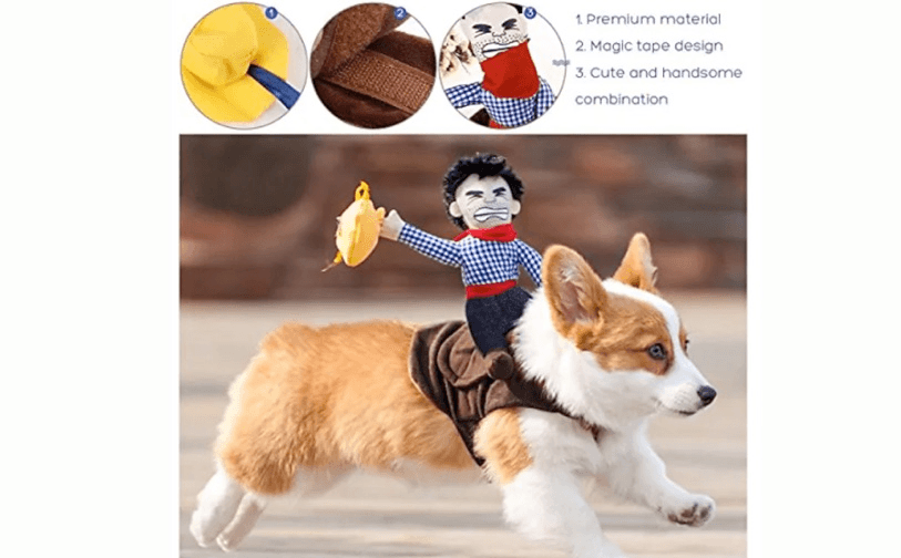 8) Cowboy Rider Dog Costume for Dogs Outfit Knight Style with Doll and Hat Pet Costume