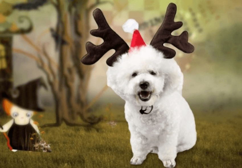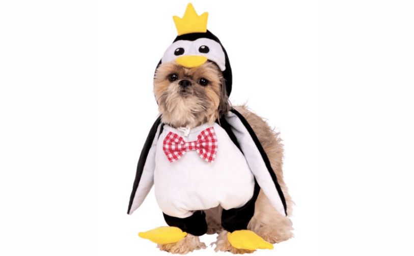 Christmas is a time of sharing, and what better time to involve your furry friend in confusing human holiday customs? In this scene found on AliExpress, Puffles is screaming in confusion from the cultural dissonance he’s experiencing from wearing a yuletide accessory in what is an obviously Halloween setting. He doesn’t understand. And he never will.