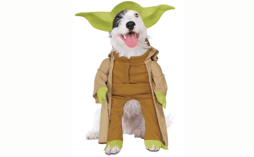 This costume makes great use of the “walking costume” format which, if used in conjunction with a small to mid-sized pooch, can achieve a scale-accurate Yoda. Imagine having the wee Jedi master walking around your house, or standing by you looking hopeful while you cook dinner?