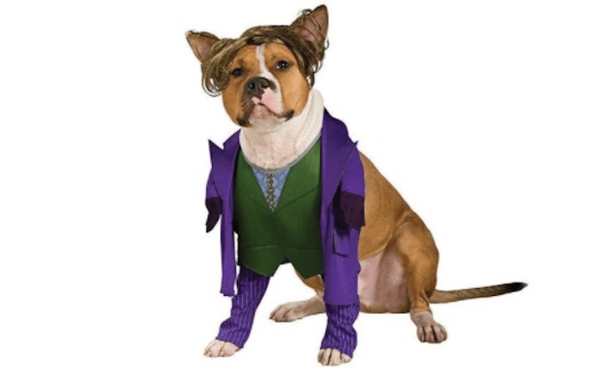 Is this the best dog costume? No. Is it the best gift for a dog-owning incel? Yes. The Joker has given solace to misanthropic nerds everywhere, so of course the invisible hand swooped in and provided the perfect way to dress up their doggy pal. It’s a win for everyone, but none more so than this dog who is rocking this look with confidence.