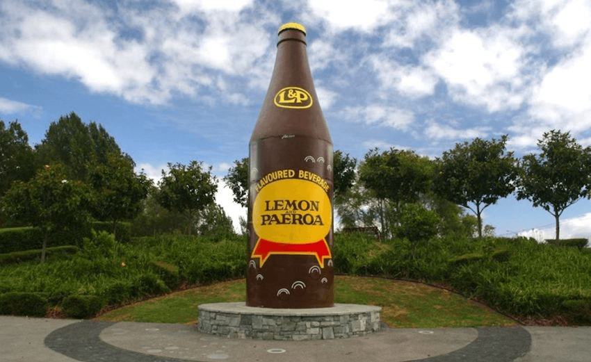 This summer will go down in history as the first time that I stood in the shadow of the mighty L&P bottle in Paeroa. The rumours are true – I have never seen a botty so big. After a sheepish look around for someone to take our picture, a young lad with a neon festie bracelet emerged bleary-eyed from his campervan to help us. We took a photo, made some disastrous small talk about the traffic, and went our separate ways. A memory – and a friendship – made forever.