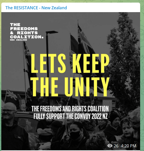 Disquiet from some parts of the movement were surfacing even before the convoy set off. In an impassioned letter to organisers, one prominent anti-mandate advocate and supporter of the QAnon conspiracy theory raised “sovereign citizen” derived concerns about many of the practical and strategic approaches, as well as warning against the encouragement to fly New Zealand flags. “It’s not patriotic to wave that flag,” he urged. “It’s akin to waving a white flag that states; ‘I’m a Corporate slave, that doesn’t understand contract law and wants to inherit billions of debt’. Don’t be that person …” His other concerns included Convoy 2022 publishing its code of conduct “on a background of red, representative of the party that is generally the rule maker of the two parts of the Corporation” and had also launched an investigation into the organiser (“we are having people look into his background as a few red flags have been sighted”).