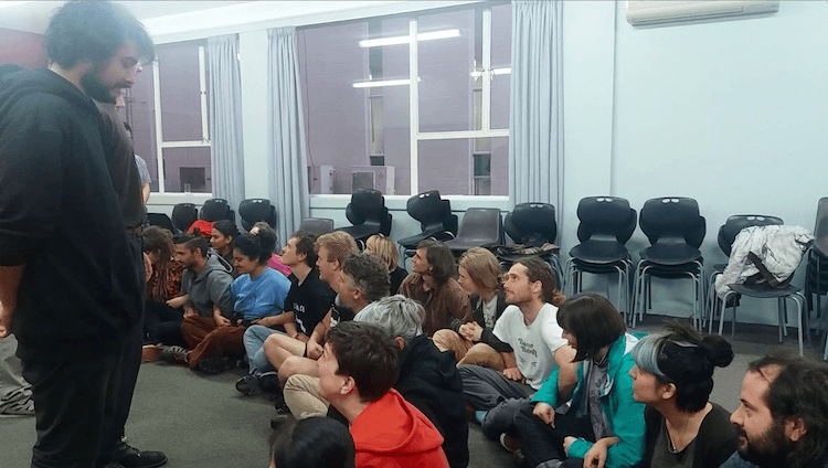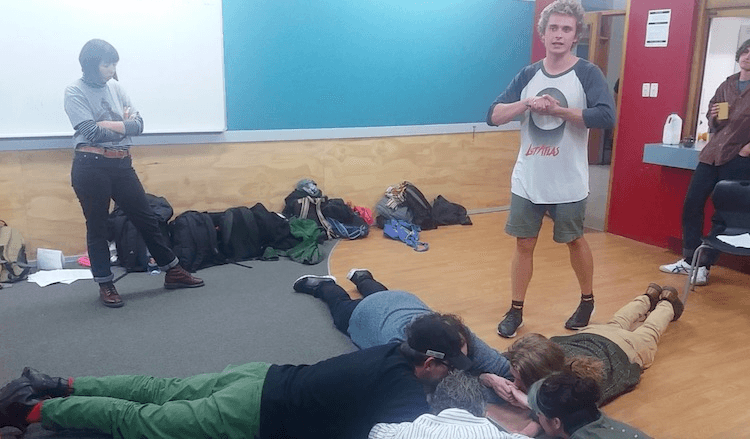 Back at the training session, that point is made by an activist who doesn’t want to be named. He says New Zealand likes to see itself as peaceful country, but because of our involvement in overseas conflicts and alliances like the Five Eyes, that’s not really the case. “There’s a lot of things said about the glory of war and its necessity, but the majority of wars are about powers exercising their force on weaker bodies, in a bid to get resources or keep their geopolitical dominance.” He adds that he sees protest as “a bit of a fuck you to the big powers.”