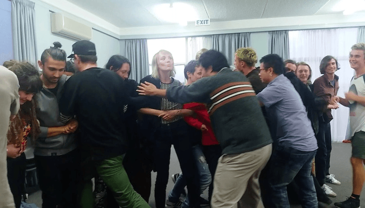 It’s not yet real, but it will be soon. The protesters are part of Auckland Peace Action, who are taking a group down to Wellington for the NZ Defence Industry Association Forum, colloquially known as the Weapons Expo. They’re training for a blockade, with the goal of stopping as many conference delegates as possible getting inside, for as long as their line holds. Those playing the role of police are veterans of past blockades; they’ve seen and experienced dislodging tactics first hand. The training involves a series of simulations that give a brief glimpse of what they might face on the day. Those who go on the blockade know it could range from insults, to arrests, to injuries.