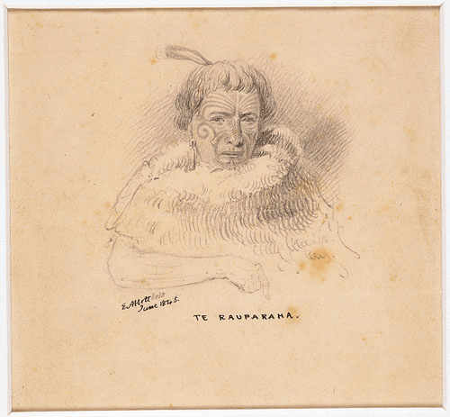 A pencil sketch of Te Rauparaha by Edward Abbott, considered one of the most accurate depictions of the chief, is dated June 1845. The sketch was almost certainly drawn during this visit to Wellington. According to jury records from that year, Edward Abbot was a clerk who lived on Tinakori Road in Thorndon, just up the hill from the Thistle Inn.