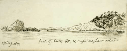 Where did Couper live in the 1830s? Wakefield says he “kept a house on Hiko’s island and was then there”. Today, Hiko’s island is known as Motungārara. It’s one of a pair of small islands just off the southeast coast of Kāpiti island. An 1843 sketch by Richard Taylor shows buildings on both islands. The other island is called Tāhoramaurea – but some older sources refer to it as Te Rauparaha’s island. William Couper and Te Rauparaha were next-door neighbours, not just once but twice – Couper’s farm in Porirua was near Taupō Pā, one of Te Rauparaha’s primary homes in his later years