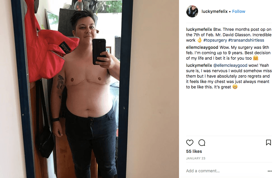 By the way, this is what my chest looks like now. Three months post op on the 7th of Feb, and on the 26th of January I passed seven months on testosterone. There’s a voice update on my Instagram. #Influencer.