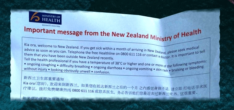 Responding to questions from The Spinoff, a spokesperson for the Ministry of Health stressed that information on Covid-19, symptoms, Healthline and the importance of self-isolation was distributed on cards provided on all incoming flights. “We have also asked airlines to make in-flight announcements to passengers to explain why the cards are being provided, at the same time the passenger arrival card information is announced.”