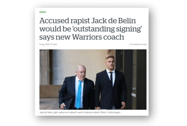 Former St Illawarra Dragons back-rower Jack de Belin was charged with aggravated sexual assault in 2018. Prosecutors say de Belin, along with his co-accused, repeatedly raped a 19-year-old in the early hours of December 9.