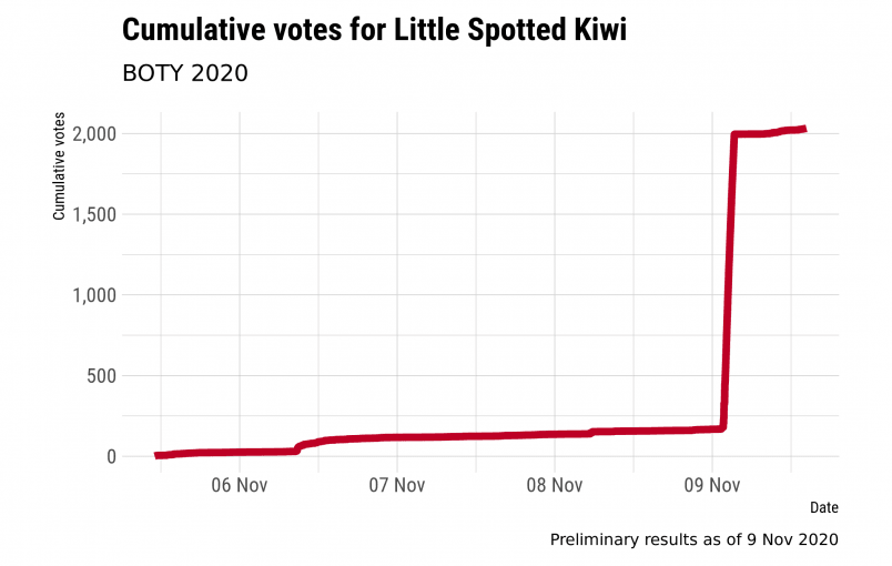 A massive voter fraud in favour of the kiwi was uncovered in the Bird of the Year competition.