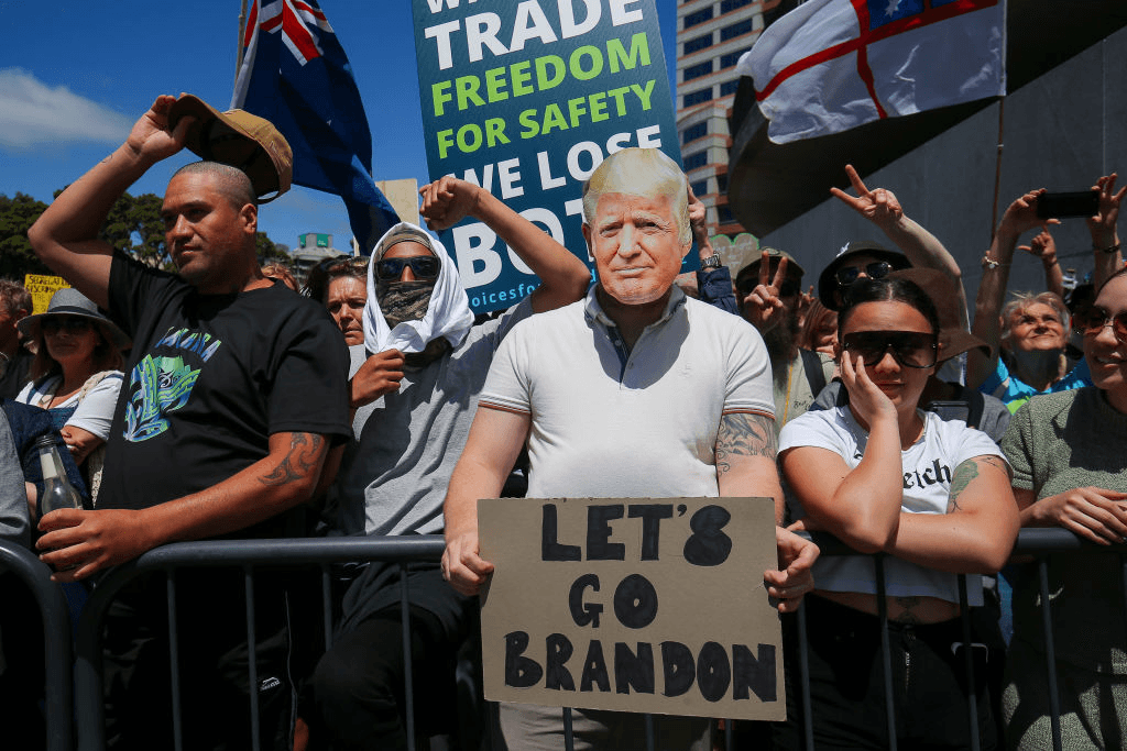 It must surely give them pause to discover they’ve been chanting alongside QAnon conspiracy theorists who believe Jacinda Ardern was arrested for child trafficking in 2019 when she visited the White House, and is currently in an ankle-bracelet under house arrest.