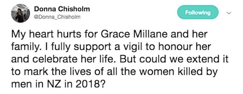 A candlelight vigil has been organised for 7.00pm this Wednesday 12 December in Wellington’s Civic Square, to honour Grace but also to honour the New Zealand women who are murdered every year. More details can be found on the Facebook event page here.