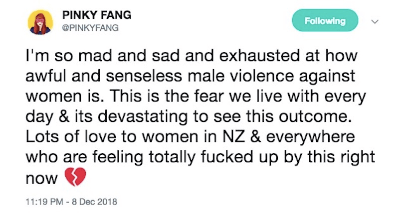 This one is for the fellas of New Zealand this week. Take some time to listen to the women around you and understand that we are all hurting in some way or another. Think of your women friends who have travelled alone. Think of the ones who were too afraid to. Think of the stories that your women friends will never tell you. Think of the stories they haven’t told anyone.