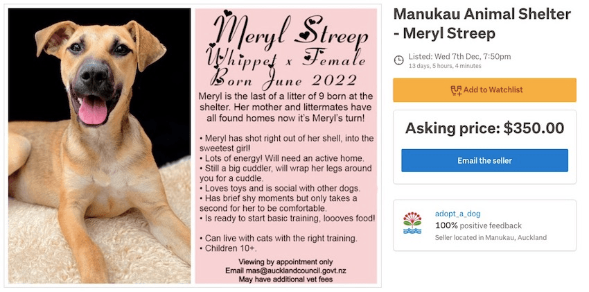 We meet a shy girl called Meryl Streep, a whippet cross with an extraordinary origin story. Her mum was found heavily pregnant in the backseat of a car that had been involved in a hit and run in South Auckland. The driver had fled the scene, so she was surrendered to the Manukau shelter where she would soon give birth to a litter of nine, including Meryl. Since then all of Meryl’s brothers and sisters, and even her own mum, have found new homes.