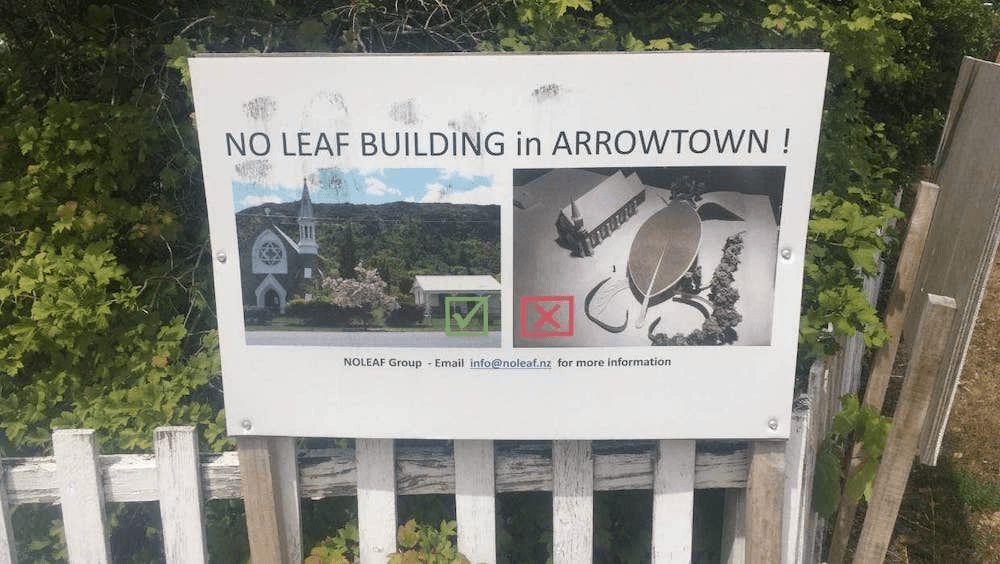 Since it was first proposed several years ago, the project has divided opinion in the local community and the small congregation of St Patrick’s Catholic Church, the heritage-listed building The Olive Leaf is meant to sit alongside. “No Leaf Building in Arrowtown!” posters were put up, and in 2016 residents formed the incorporated society, NoLeaf, to band together to oppose the development.