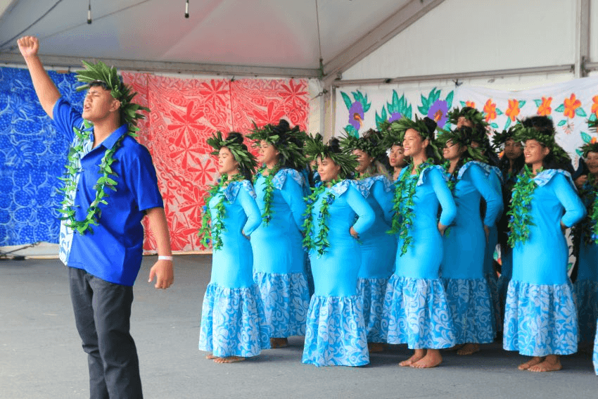 Tamaki College was the last school to perform on this stage and brought a sea of blue with their uniform reflecting the Cook Islands flag. Their performance included the kapa rima or action songs using hands, which was beautifully in sync. Their standout moment was hoisting a few students in the air creating a triangle formation on stage, which sent the audience wild.