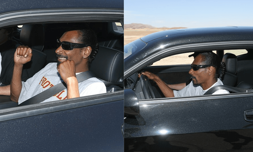 The rapper lean – the one my boyfriend favours – is ultimately ridiculous. Cool as it might be to drive as though you’re sitting in a dentist’s chair, it’s not safe, even if you’re tall, because you can’t see over the steering wheel. Most people have to hunch forward to even reach it. Look, for example, at Snoop Dogg below, another fan of the deep recline. Standing at an impressive 6’3, even he needs to crane forward to rest his hands comfortably on the wheel:
